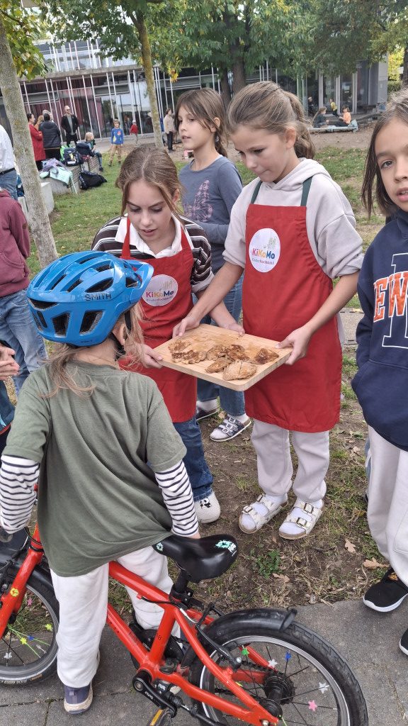 Auch in der zweiten Jahreshälfte 2025 rollte unser Kinderkochmobil durch Karlsruhe – von spätsommerlichen Tagen bis hinein in die winterliche Jahreszeit. Ob auf Schulhöfen, in Kitas, bei Veranstaltungen oder direkt im Herzen der Stadt: Überall wurde gemeinsam gekocht. Dabei stand nicht nur das Zubereiten von Speisen im Mittelpunkt. Die Kinder konnten Lebensmittel mit allen Sinnen entdecken, Neues kennenlernen und erleben, wie viel Freude gemeinsames Tun macht. Zusammenarbeit, Rücksicht und gemeinsamer Genuss spielten dabei eine ebenso große Rolle wie der Spaß am Kochen selbst.