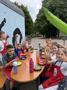 Dabei gab es für die Kinder viel zu entdecken: unterschiedliche Zutaten, neue Zubereitungsweisen und natürlich jede Menge Raum zum Ausprobieren. Einige Kinder waren sogar sowohl vormittags als auch nachmittags dabei und hatten so die Möglichkeit, beide Rezepte kennenzulernen und selbst zuzubereiten.