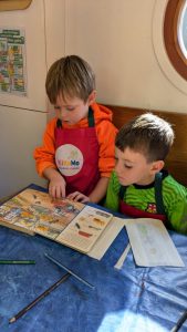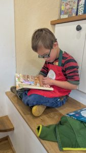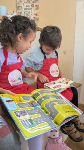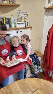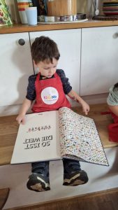 Wir lesen gemeinsam eine Geschichte oder schauen uns ein Bilder-Sachbuch an und knüpfen anschließend wieder an das Kochen an.