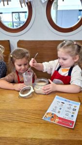 - Gemeinsames Kochen und Backen, viele spielerische Elemente, gemeinsames Ausprobieren, Teamarbeit, frühe alltagsnahe Sprachförderung